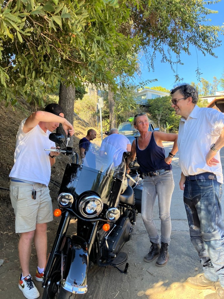 Prise en main des motos, puis petit « échauffement » sans guide, lâchés dans LA…vive le GPS…Beverly Hills, Hollywood Boulevard et le « walk of fame », le célèbre panonceau publicitaire « Hollywood » mais plusieurs chutes (sans gravité) de nos amis avec une petite réparation effectuée par un charmant habitant de passage. Puis 200 kilomètres d’autoroute pour rejoindre Palm Spring (Dieu qu’il y fait chaud…) pour une pause avant les 430 kilomètres de demain et Joshua Tree National Park.