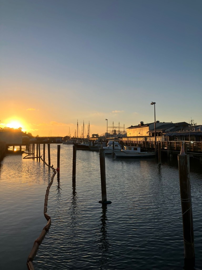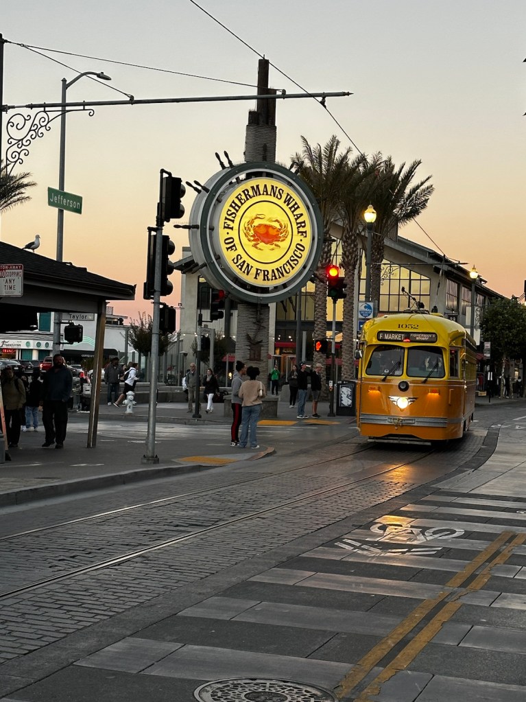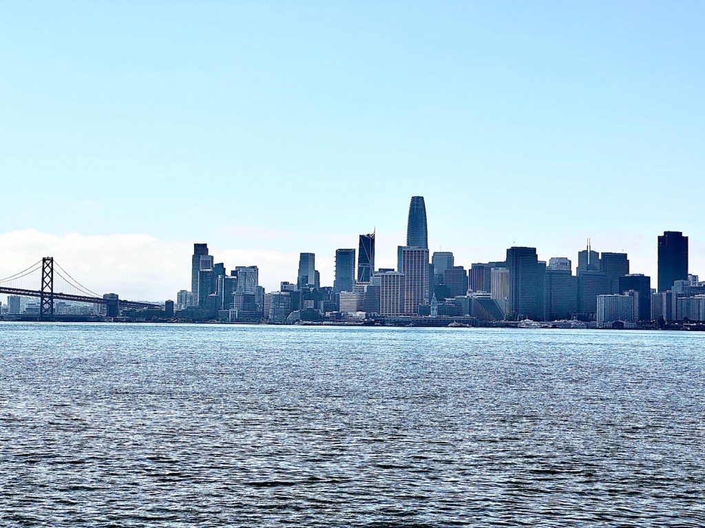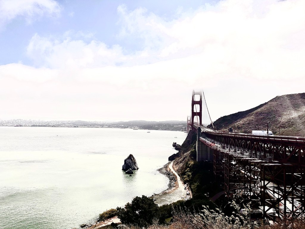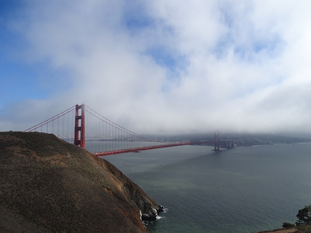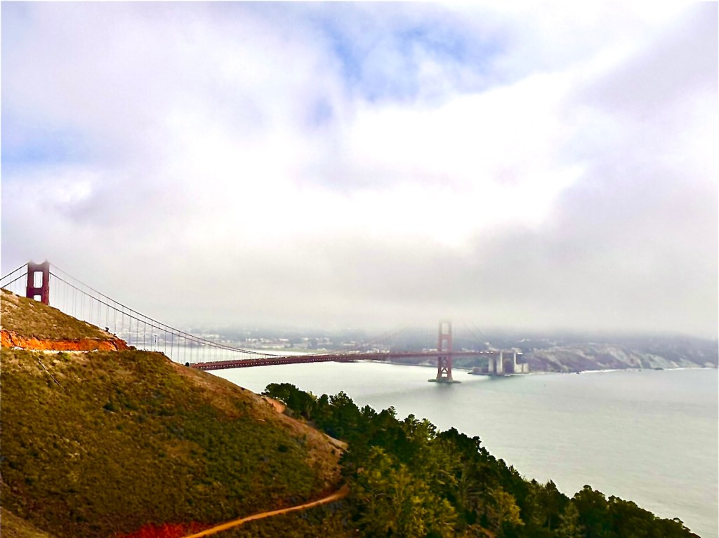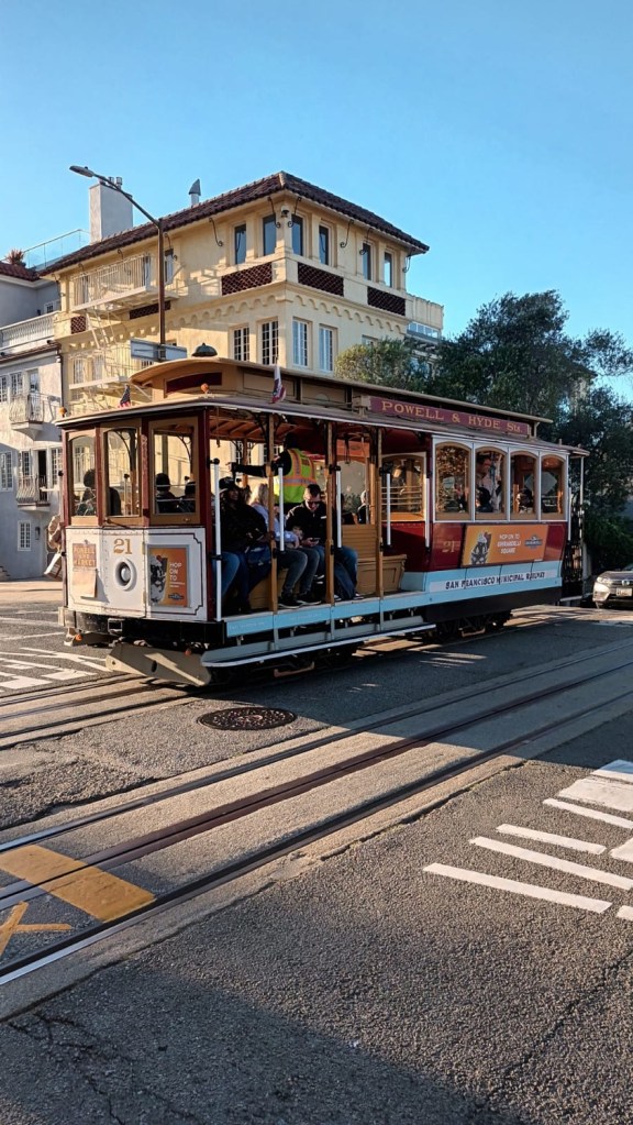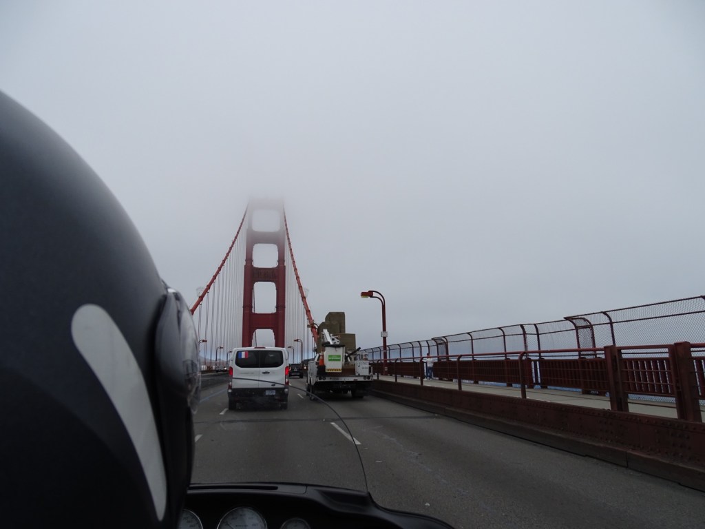 Départ à 7h30. Vraiment frisquet, la polaire n’est pas de trop ! Il fait 14 degrés en partant, cela ne montera guère en route et ça se rafraîchira encore en arrivant dans la région de la Baie de San Francisco. Le paysage est moins impressionnant sur ce trajet, succession de plaines immenses pour de l’élevage extensif, et des vergers aussi à perte de vue. Beaucoup d’autoroute, donc attention car la somnolence peut survenir, motos groupées en quinconce et arrêt toutes les heures. Nous contournons San Francisco par le nord pour franchir le Golden Gate 🌉, puis regagnons divers points de vue pour les inévitables photos de ce site exceptionnel. Quatre heures de route pour rejoindre l’hotel et partir ensuite flâner à la découverte de la ville. Demain c’est « jour off » donc nous aurons le temps de parcourir un peu mieux cette cité.