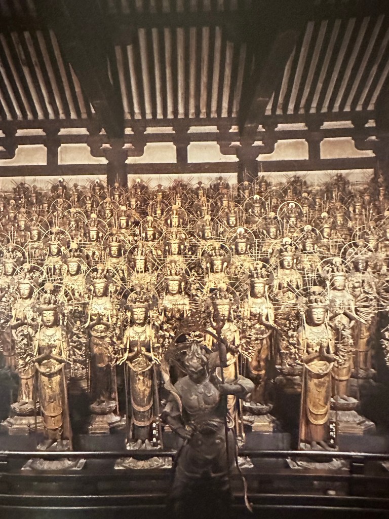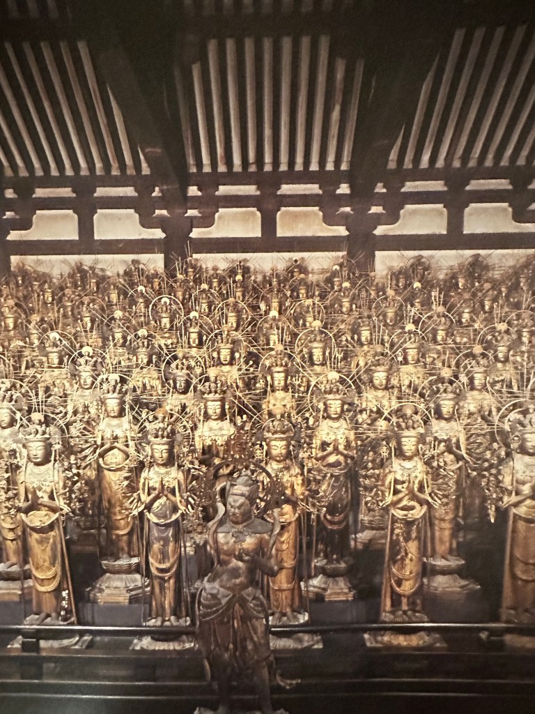Après un déjeuner rapide, visite du temple Sanjusangen-do, qui renferme dans la plus longue structure en bois du monde (120 mètres) 1001 statues de bois parfaitement alignées représentant la déesse Kannon, divinité boudhiste de la compassion.