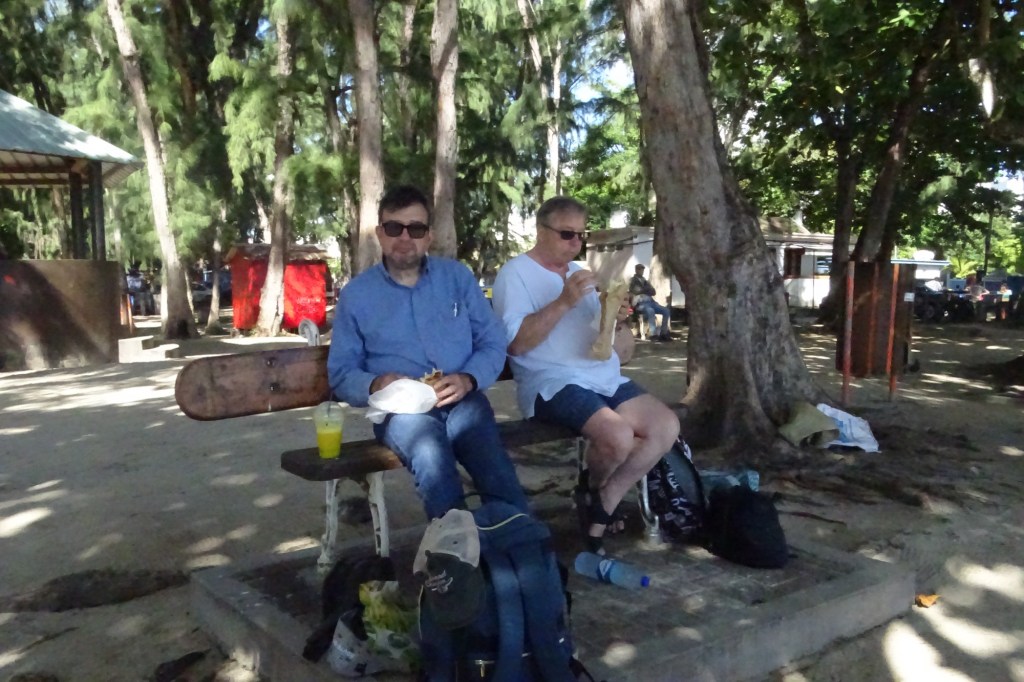 On en profite pour quelques derniĂšres emplettes au Bazar (en y allant en bus!), puis pique-nique sur la plage de Trou-aux-Biches connue pour ses eaux claires et peu profondes permettant dâobserver des spots coralliens Ă la faune trĂšs riche, dont le splendide poisson perroquet.