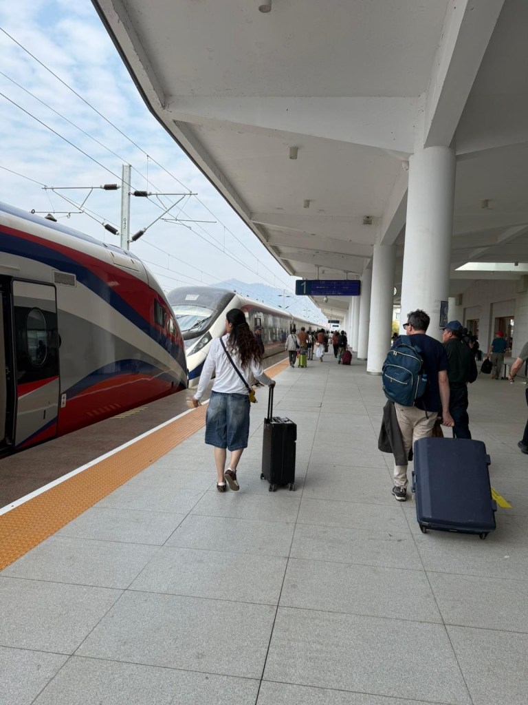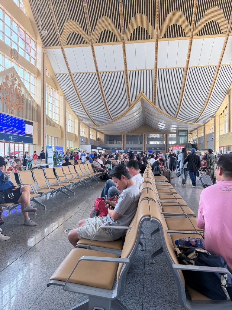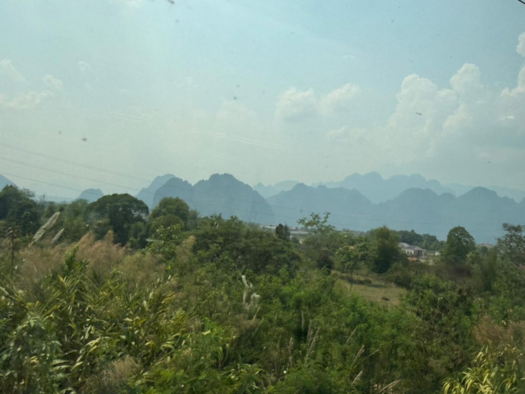 Retour Ă lâhĂŽtel puis dĂ©part pour Ventiane en train rapide (deux heures pour 400 kilomĂštres, il faudrait dix heures en voiture vu lâĂ©tat des routes). Ce train chinois est cela dit trĂšs confortable et nâa rien Ă envier au TGV français.