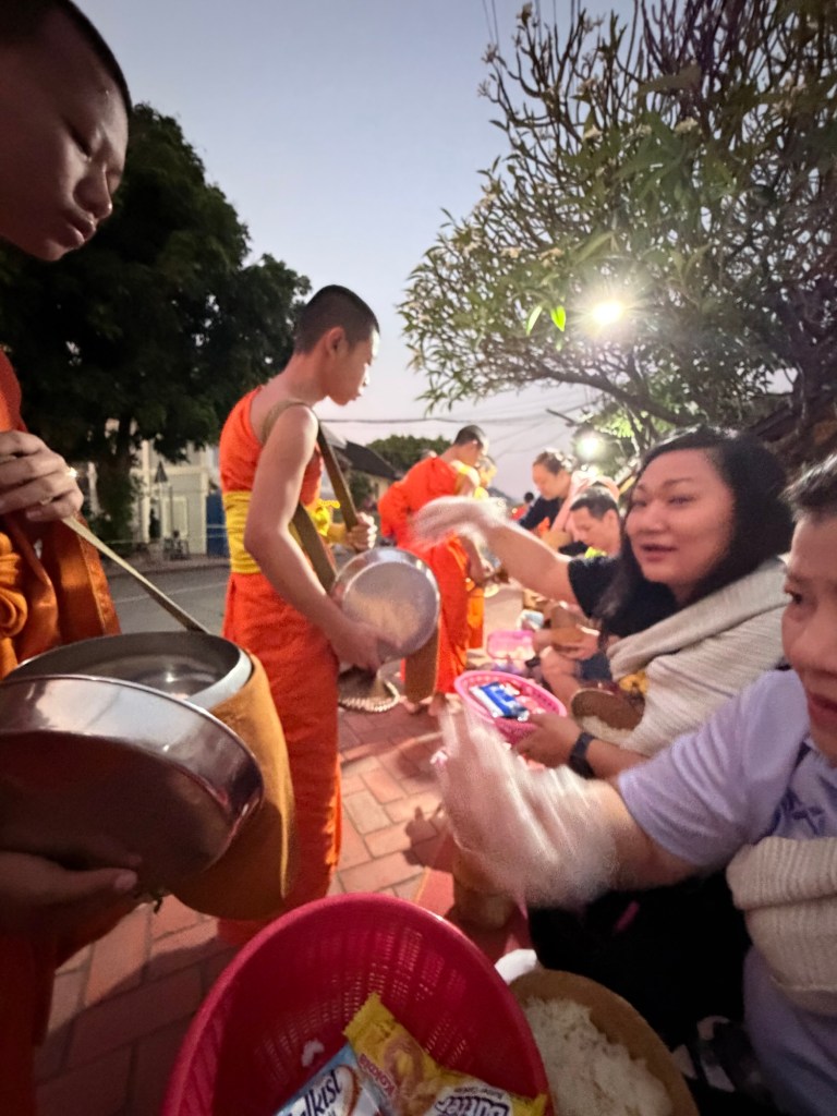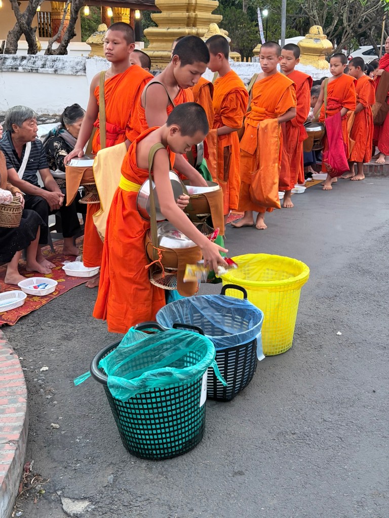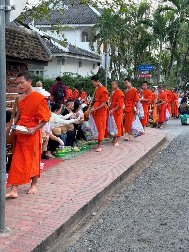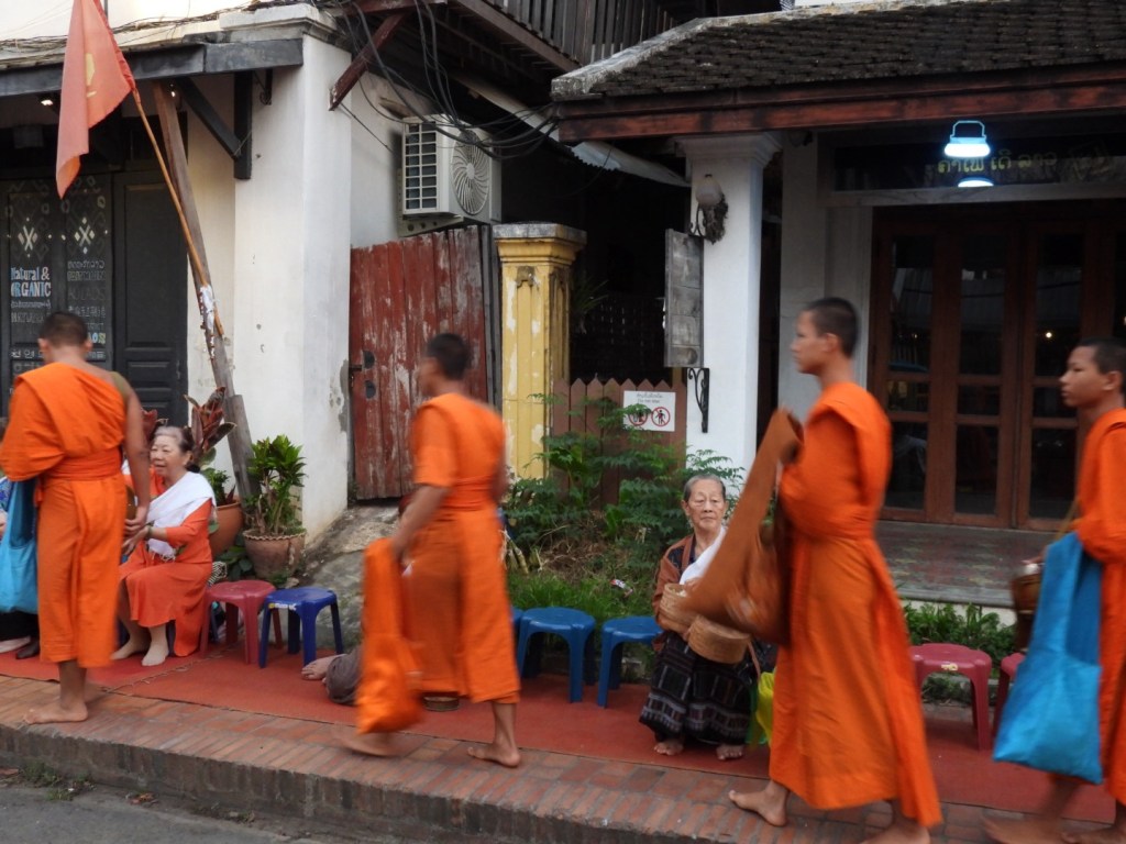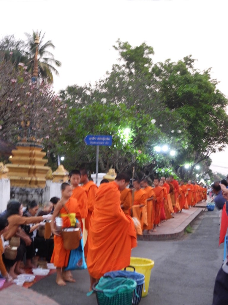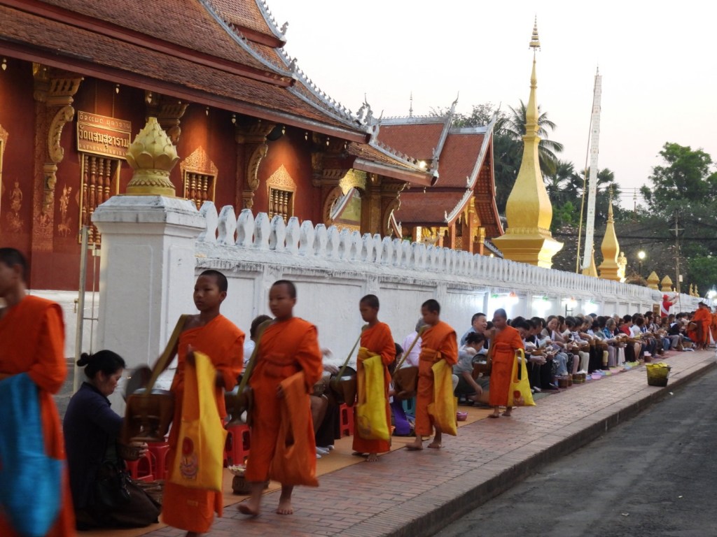 Cette cĂ©rĂ©monie de lâaumĂŽne des moines est une cĂ©rĂ©monie bouddhiste ancestrale observĂ©e entre autres au Laos. La cĂ©rĂ©monie du Tak Bat Ă Luang Prabang est particuliĂšrement cĂ©lĂšbre.
