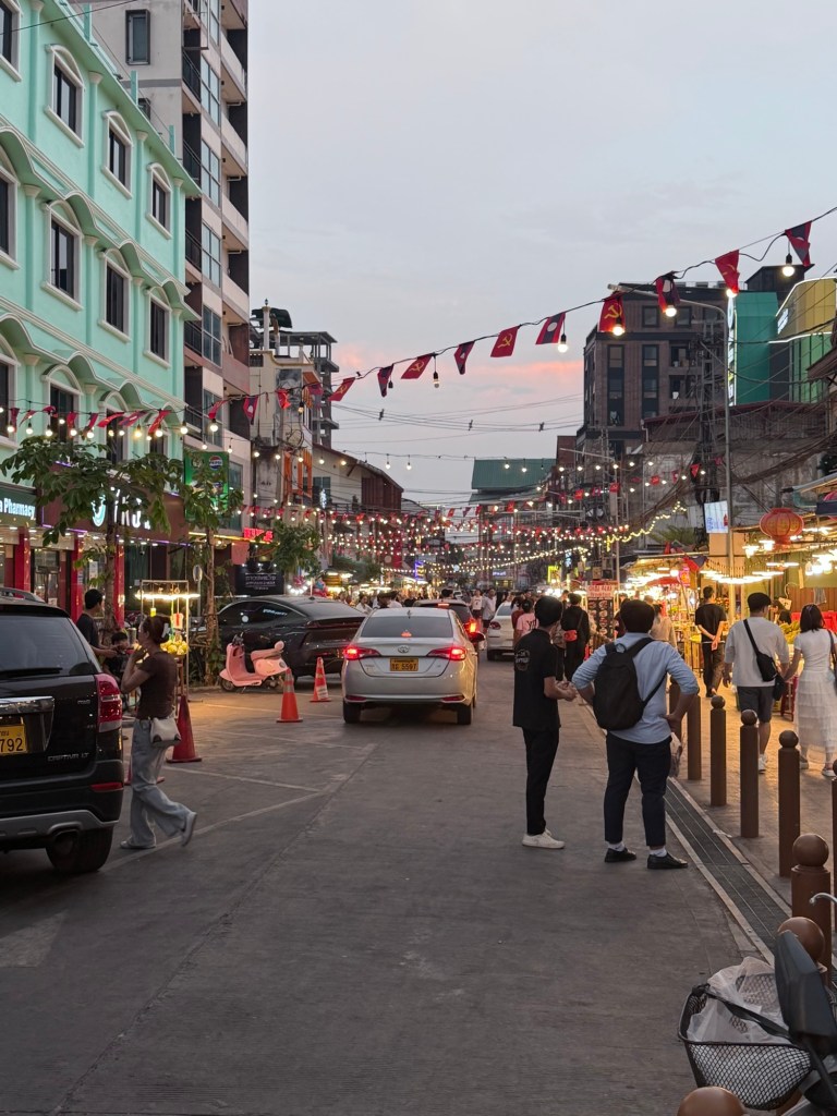 ArrivĂ©e Ă Ventiane. Tout autre style que Luang PrabangâŠon passe dâune petite agglomĂ©ration de 90 000 habitants trĂšs touristique Ă une mĂ©galopole de 700 000 habitants avec un fort taux de croissance et une activitĂ© qui rappelle un peu HanoĂŻ (toutes proportions gardĂ©es). Il fait beaucoup plus chaud, lâambiance bigarrĂ©e industrieuse est surprenante au dĂ©but par ce contraste avec Luang Prabang, mais cela reste trĂšs sympa avec des restaurants toujours aussi abordables.