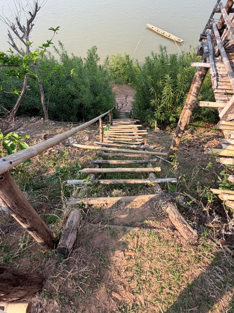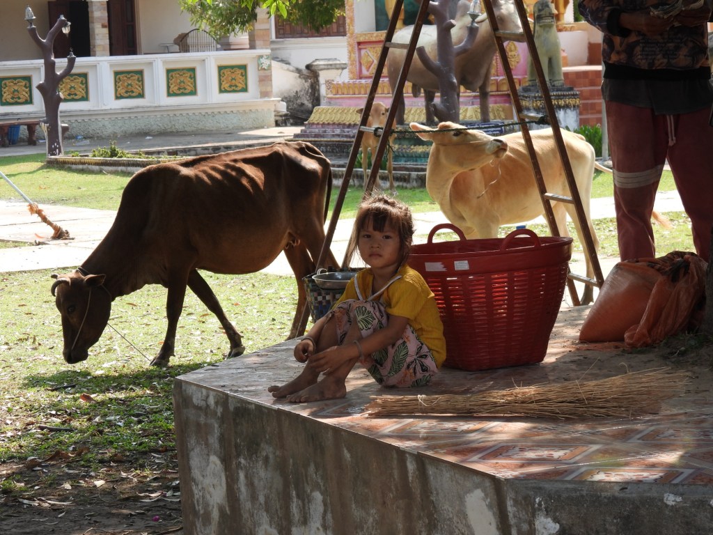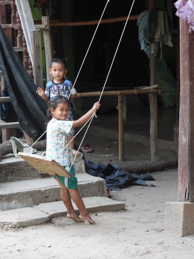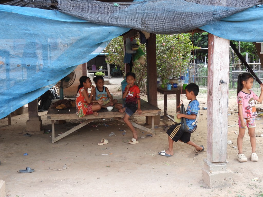 Nous avons pu Ă©changer avec les villageois, nous imprĂ©gner un peu de cette vie traditionnelle laotienne qui semble nâavoir pas bougĂ© depuis des siĂšcles, 200 familles sur une Ăźle vivant du riz, de lâĂ©levage, de la pĂȘche et du maraĂźchage. Il y a bien une Ă©cole primaire mais ensuite câest le bateau tous les matins (il nây a pas de ponts) et câest encore plus compliquĂ© aprĂšs le collĂšge.