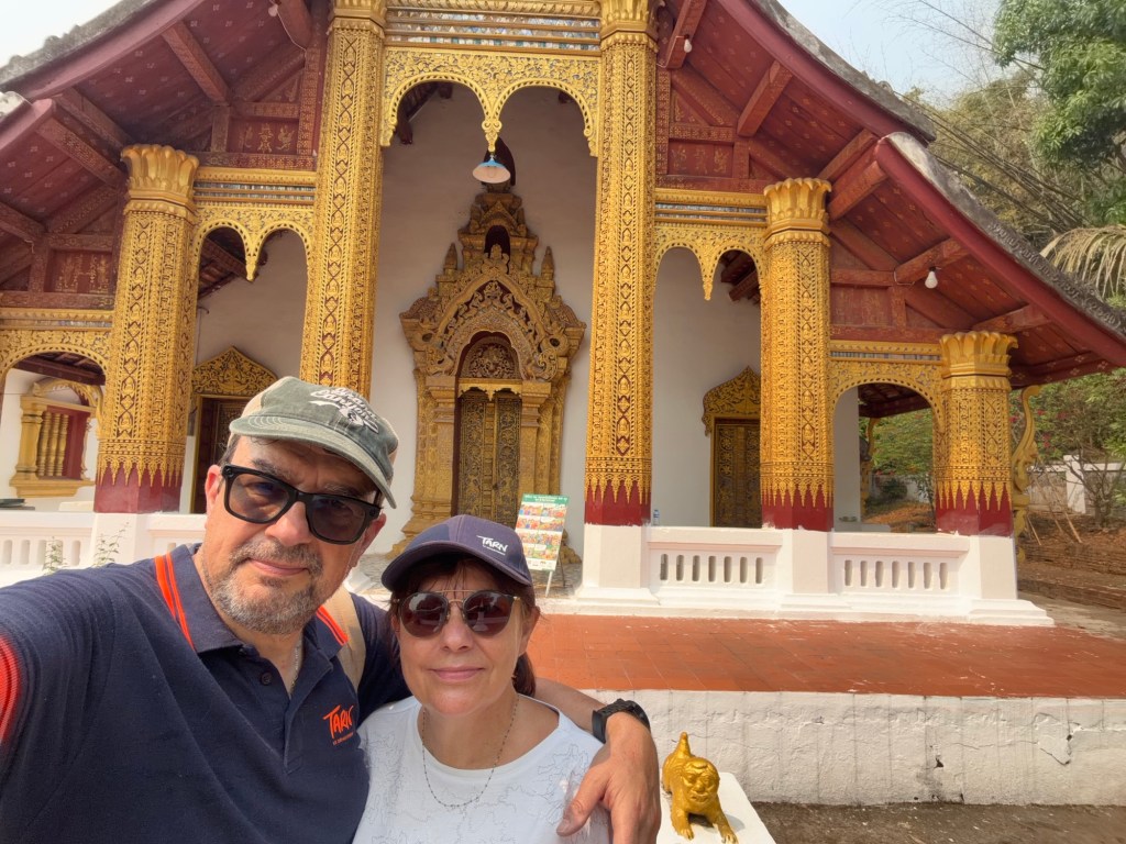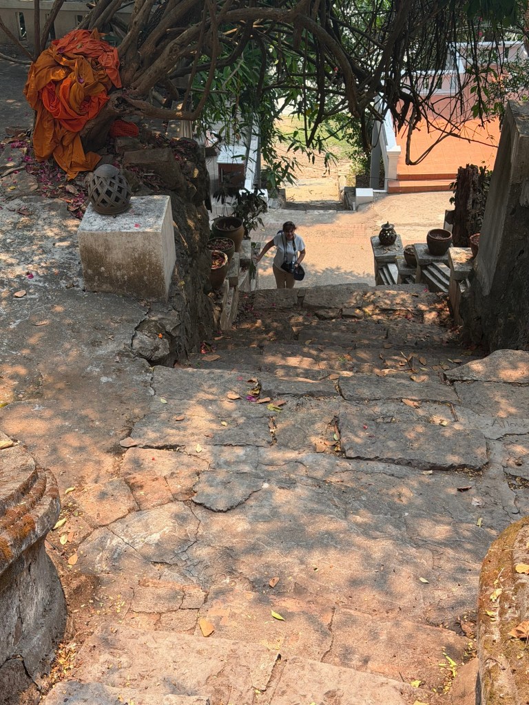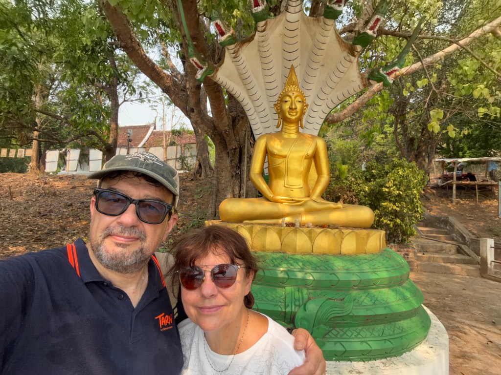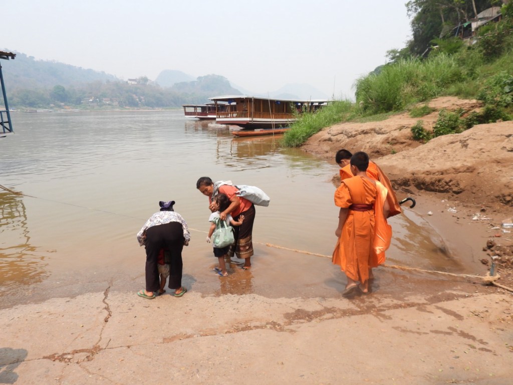 Cette ville se dĂ©veloppant aussi sur lâautre rive du MĂ©kong, nous avons pris le bac pour le traverser et nous promener de temple en temple et de village en village.
