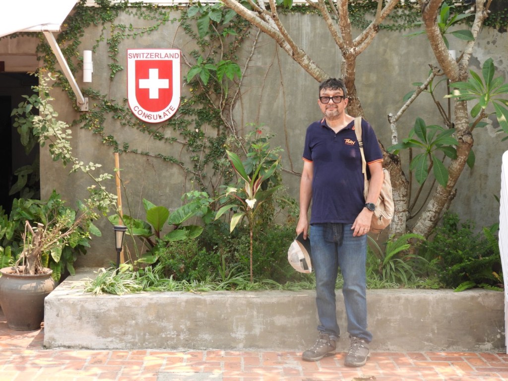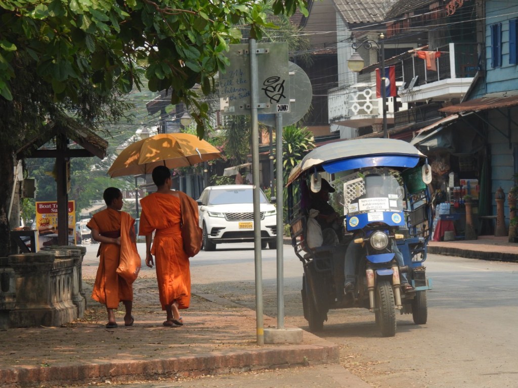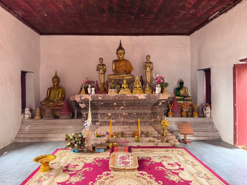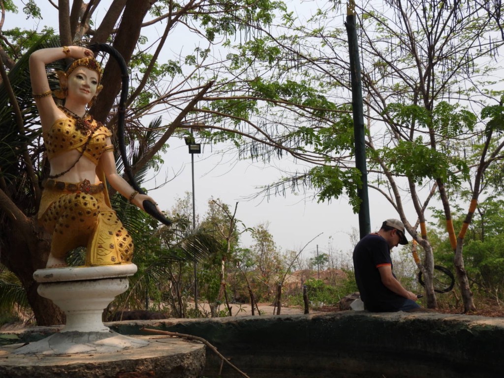 Cette ville se dĂ©veloppant aussi sur lâautre rive du MĂ©kong, nous avons pris le bac pour le traverser et nous promener de temple en temple et de village en village.